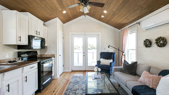The Sipsey Park Model features a thoughtfully designed open floor plan that fosters a bright and welcoming atmosphere throughout the living space. The seamless flow between the kitchen and living area leads you effortlessly into the master bedroom, which is complemented by a generously sized bathroom that boasts a luxurious 60” fiberglass shower. For added convenience, a short and child-friendly staircase provides easy access to the spacious loft, perfect for extra sleeping or play space. Whether you're planning a weekend getaway with family or friends, the Berry model comfortably accommodates up to six guests, ensuring a delightful retreat for everyone.